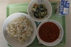 今日はメキシコ風ピラフでした。酸味の効いたさっぱりした味です。