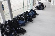 昨日の朝練習のときの、荷物や靴の整理整頓の様子を拾いました。