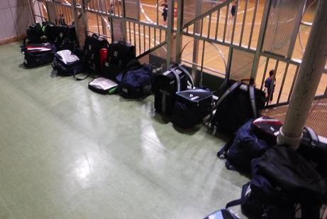 体育館の下足箱はバスケットボールとバレー部です。荷物はバスケットボール部。