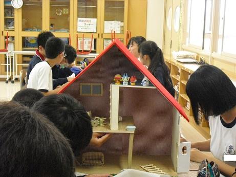 夏休みの宿題「幼児のおもちゃ」を持ち寄り、グループごとに発表しました。力作揃いで見るだけで楽しくなってしまいます。ドールハウスは大きさもあり、時間や手間をかけて作られているのがわかります。幼児がどんな顔で喜んでくれるか楽しみですね!
