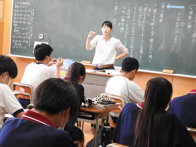 ALTの先生がPicture Gameのルール説明をしている場面です。