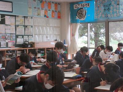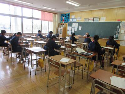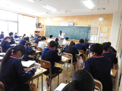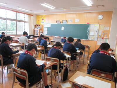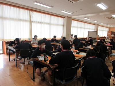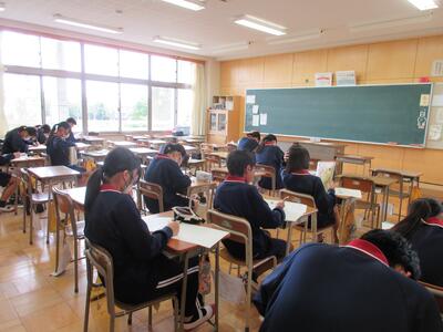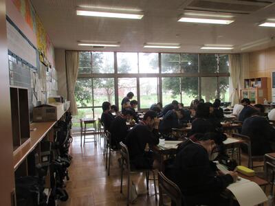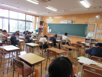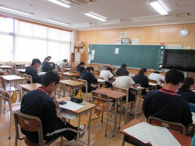 今日も新人戦2日目のため、各クラス数学のプリントなどの自主学習が行われています。