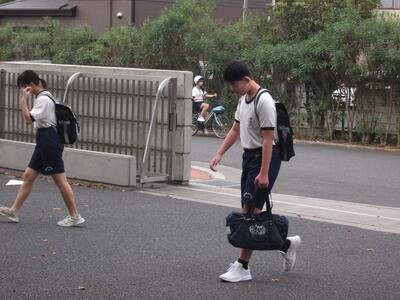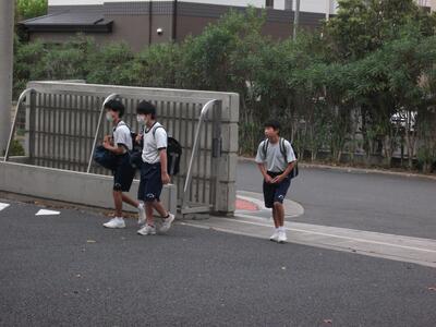 生徒が安全に登下校できるように、フェンス際に伸びた木の枝を剪定しました。