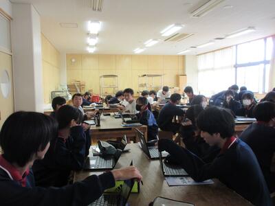 総合の時間では上級学校について調べるプリント学習が行われていました。