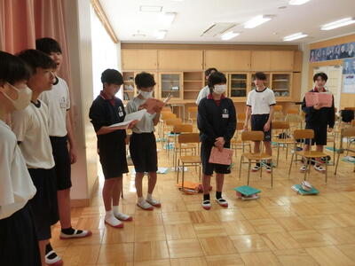 東中祭の振り返りで学年曲とクラス曲を順番に発表