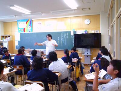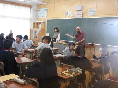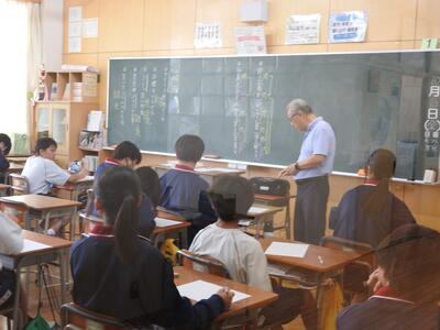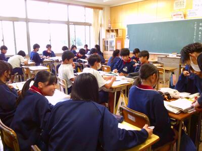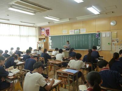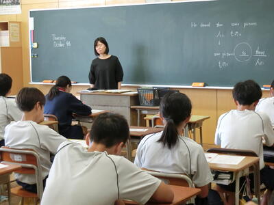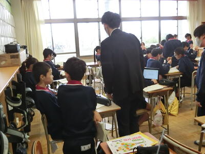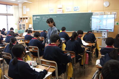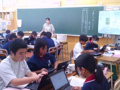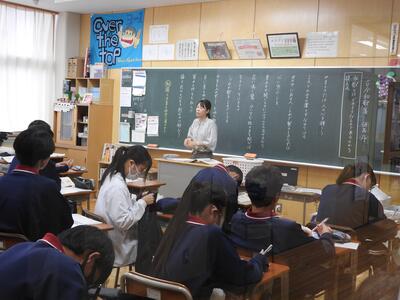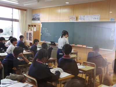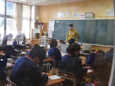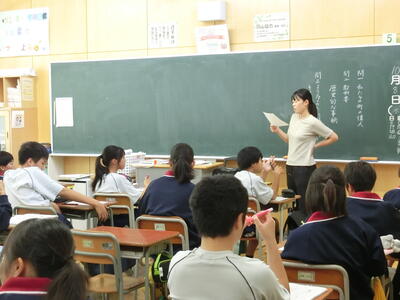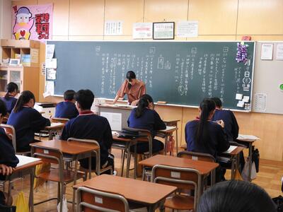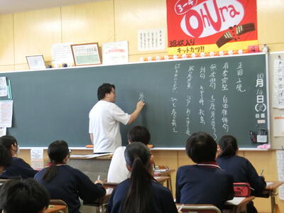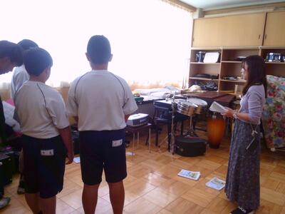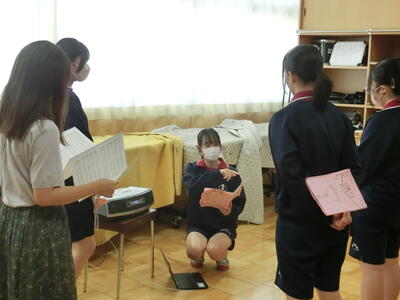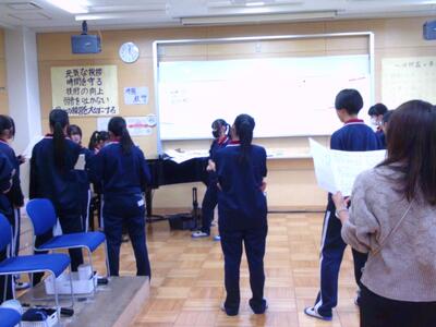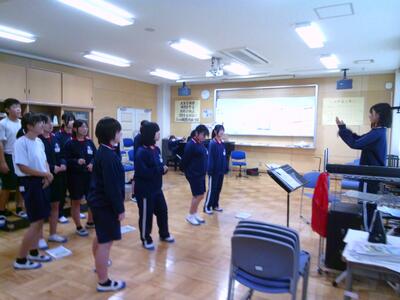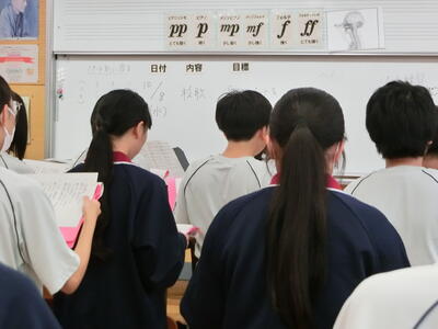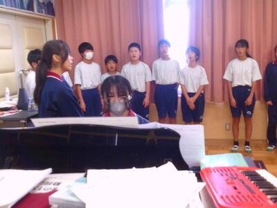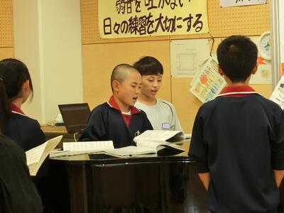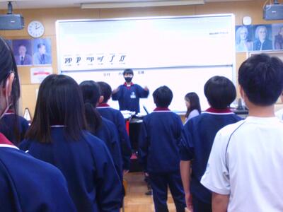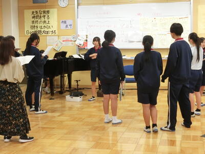 生徒「秋には秋の星が瞬いてのところ、歌うタイミングが遅いから手本に合わせよう!