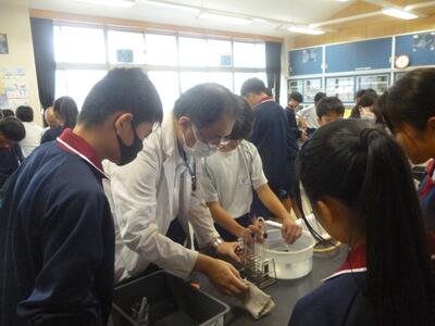 先生「プレートを素手で触らないでね。実験中は熱いから必ず軍手を着用してね」