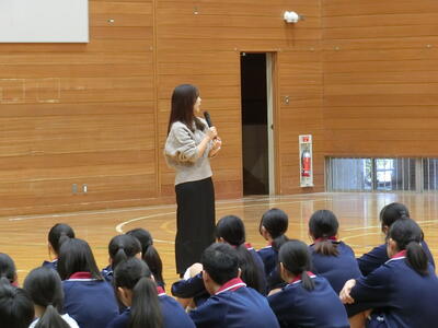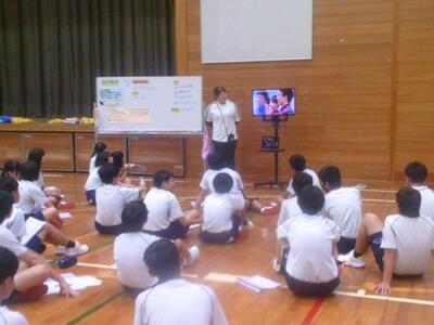 「朝食はなぜ必要か?」ということについて先生がお話をしている場面