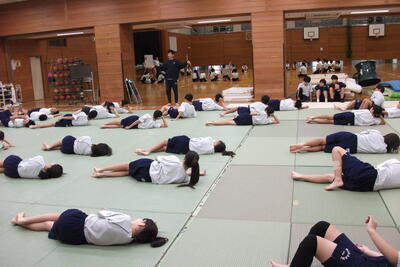 先生「これから女子、男子の順でペアごとにガイドヘルプ体験を行います」