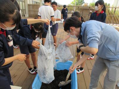 先生「土を柔らかくしないと、立派な小松菜ができないよ!」