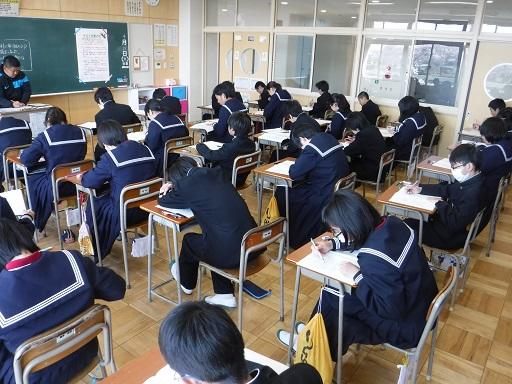 給食後の5時間目は質問用紙(生活実態や中学生の心情・考え方を問う質問)