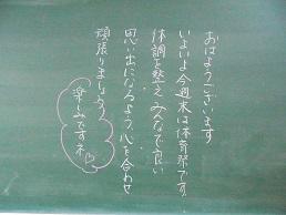 担任の先生が早めに出勤されて、教室環境を整え、登校してきた生徒が、今日も一日がんばろうという気持ちになるような黒板メッセージを残しています。