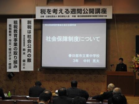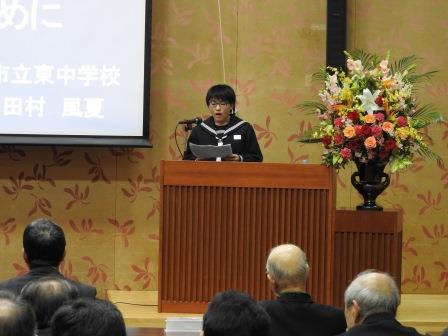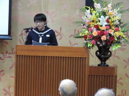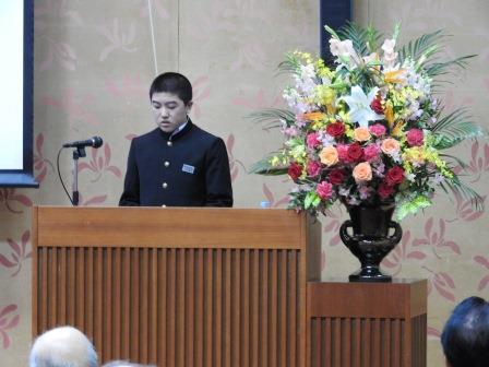 前生徒会長の話の主旨「他校の生徒会との話し合いや活動で大きく成長できました」