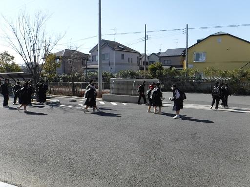 いったん家に帰り、出願に向かいます。校門を出る三年生