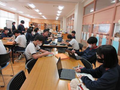 図書室にある絵本などを参考にしてみんなであれこれ考えています。