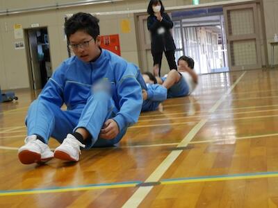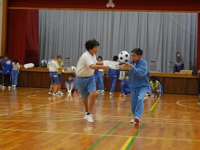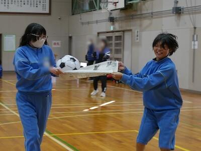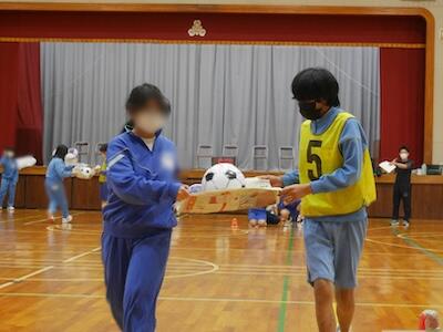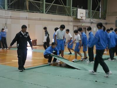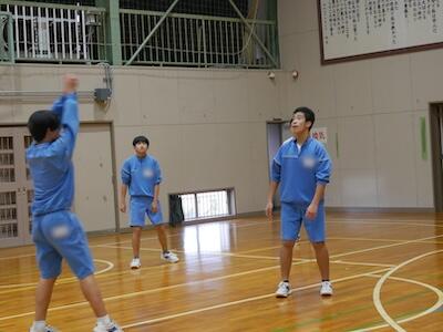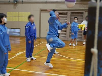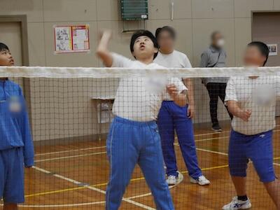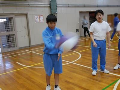 本日は、東ブロック支援学級の地区交流会が本校で開かれ、葛飾中、豊野中、江戸川小中のお友達が訪れてくれました。準備運動を行なった後、ビーチバレー、ボールリレーなどをして楽しみました。チームは、いろいろな学校の混合チームで、他校のお友達ともすぐに仲良くなっていたようです。飯中生は、他校の生徒がやってくる時の駐輪場の係や案内の係、司会など大活躍でした。