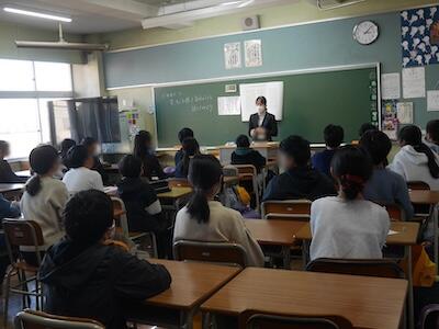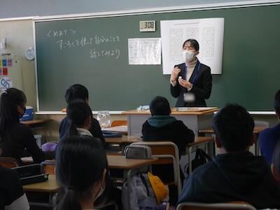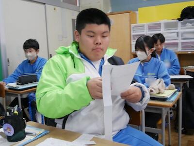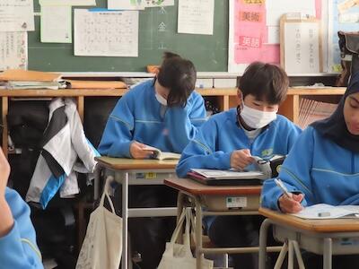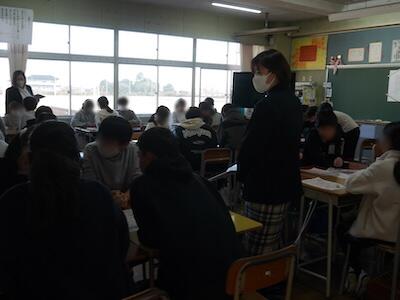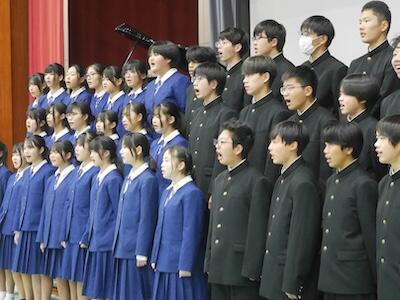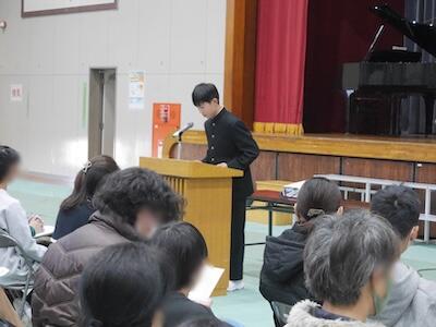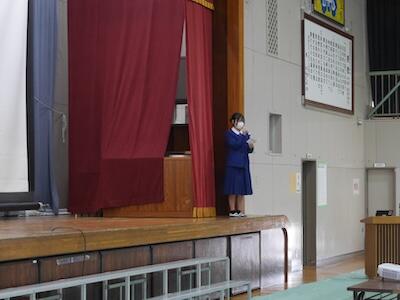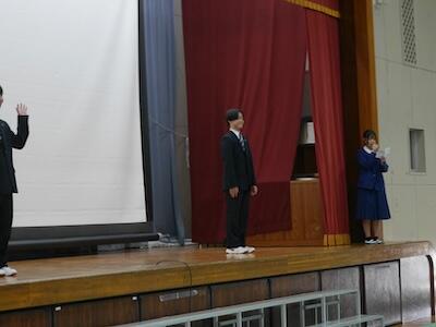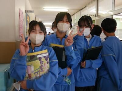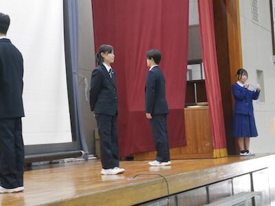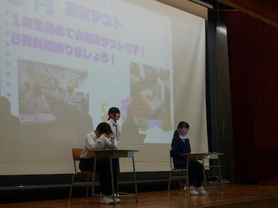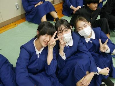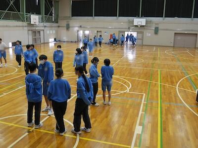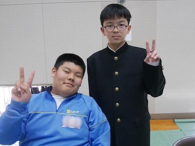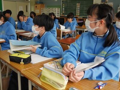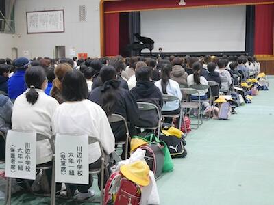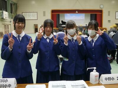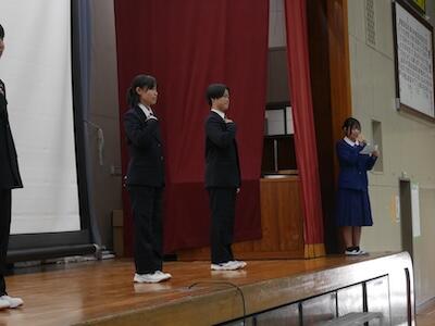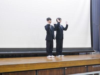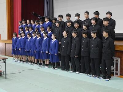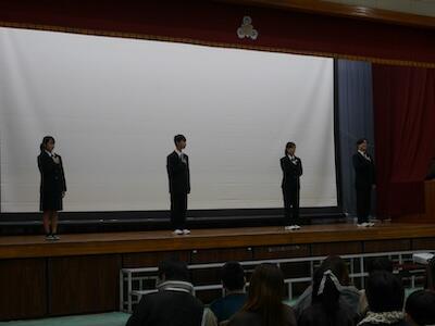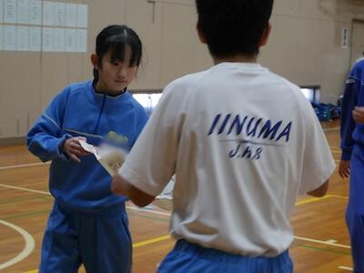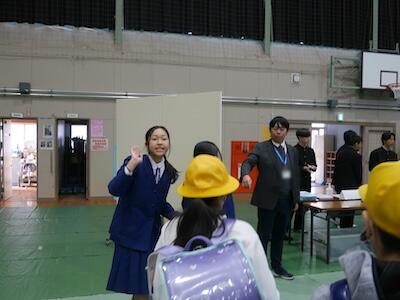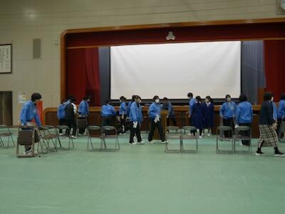 本日の午後は、来年度本校に入学する児童と保護者の方々をお招きし、新入生説明会を行いました。校長あいさつ、生徒会長あいさつの後、有志による校歌の披露、そして生徒会本部による飯中の1年を寸劇や飯中ソーランなどを交えながら紹介しました。その後は、来年度から変更になる新しい制服のお披露目をしました。前半は、児童・保護者に聞いていただき、後半は児童は教室で活動をしました。教室では、川辺、中野、桜川の生徒が一緒になってコミュニケーション活動を行いました。入学前にお互いを知ることができるよいチャンスになったと思います。もう新しいお友達ができた人もいたのではないでしょうか。4月にみなさんが入学するのを楽しみにしています。