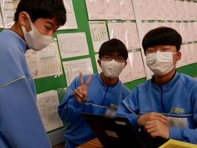 本日は、休み時間の様子をお伝えします。受験に向け、授業中は真剣な表情の3年生も休み時間には少しだけリラックスした表情になります。あと3ヶ月。受験は団体戦です、みんなで頑張って乗り切ろう!