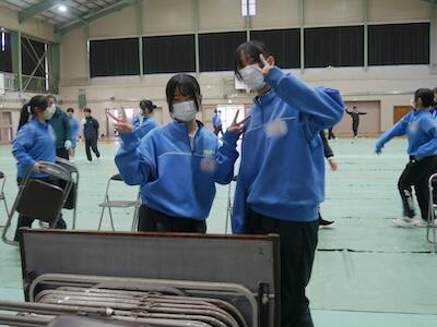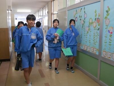在校生が本日行われる新入生説明会の準備をしています。来年度後輩となる6年生のために体育館の会場準備や落ち葉掃き、教室整備などをしました。学校にやってくる中野小、川辺小の6年生のために「気持ちを尽くして」準備をしています。飯中生の素晴らしいところのひとつ、誇りに思います。ありがとう。
