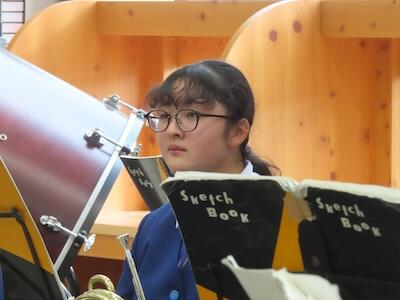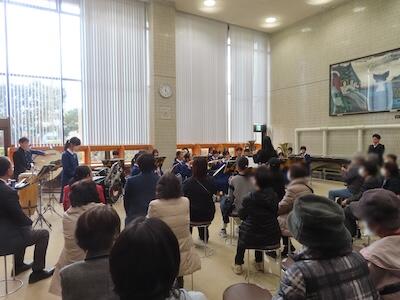 本日は、正風館にて行われた庄和地区公民館まつりに本校の吹奏楽部が出演しました。ロビーにて5曲演奏をしました。演奏後に地域の方々からたくさんのお褒めのことばをいただきました。こうして地域の皆様に支えられながら、来年も飯沼中は飛躍していきます。