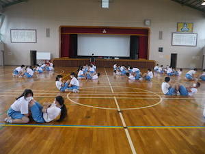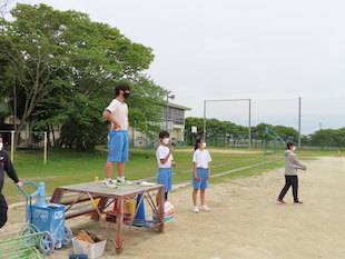 午後の活動は、体育祭の練習を兼ねたラベンダー体操とハリケーン(台風の目)でした。動きやルールを確認しながら活動をし、最後には、ハリケーンのレースを行いました。