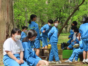 カレーづくりが終わり、片付けが終わった班から休憩になりました。次の活動までの間、仲間と思い思いに過ごしています。出発式で校長が出したミッションはもうクリアしたでしょうか?次の活動までの束の間の休憩です。
