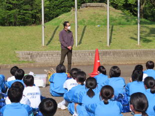 あいさつの後は、応援席の確認とともに入退場の練習をしたのですが、3年生は、退場指示から応援席で腰を下ろして退場完了までかかった時間が約10秒!1・2年生も15~20秒で退場を完了させていました。指示を受け、全員が全速力で応援席へ戻ります。また全体が応援席から入場し、整列完了までも約20秒でした。練習から真剣に取り組める姿勢はとても立派でした。飯中の新たな10年、継承と創造はここから始まります!