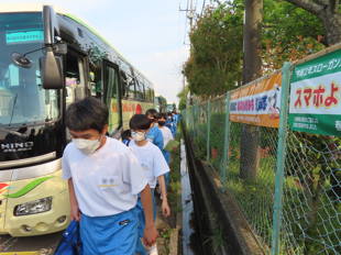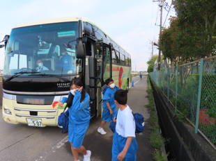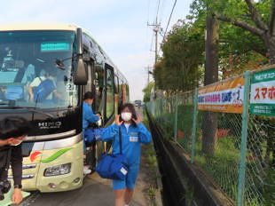 健康観察をしっかりと行い、バス乗車時は、手指消毒を行い出発しました。