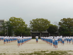 その後、入退場の練習となったのですが、2・3年生はもちろんのこと、1年生も昨日より数段素早く行動ができるようになっていました。全員が全力疾走で集合する様は、見ていても壮観です。真剣な気持ちがこちらにも伝わってきました。
