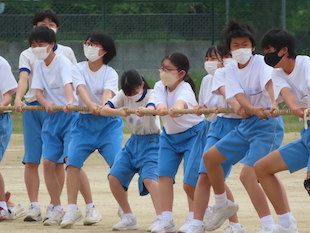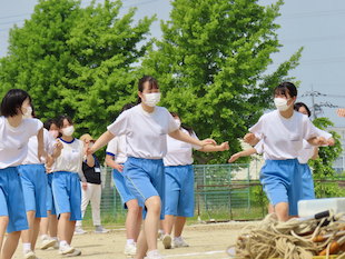 コロナ禍にあり、体育祭の実施に関しては、まだまだ制約が多いところではありますが、感染症対策を徹底し、できるだけ保護者、地域のみなさまに参観していただけるよう工夫をしてまいります。生徒たちの活躍をどうぞ楽しみにしていてください。