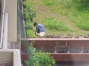 本校の校長室向かいの階段につばめが巣を作っています。雛が成長して重くなっていたのでしょう。この連休に巣が床に落ちてしまいました。それに本校の職員が気づき、同じ場所に巣を修復して付けてあげました。すると本日、雛たちは無事巣に戻っていました。職員の優しい気持ちが雛を救いました。また飯中職員の良さを見つけた瞬間でした。