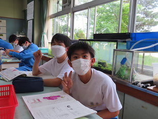 体育の授業では、1ヶ月後に行われる体育祭の練習がスタートしています。本日のぞかせていただいたクラスは、ソーラン節の練習を行っていました。明日は、全校で、ラベンダー体操の確認をする予定です。2年生の英語の授業では、ALTの先生と一緒に英語版の双六で楽しみながら英語学習をしていました。「Go forward 2 squares」--双六には、こんなことばが書かれていました。また理科の授業では、回路図を見ながら、実験をしていました。実験の結果を知りたくて輝く目が印象的でした。