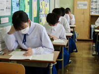 本日は、期末テスト1日目でした。本来は、制服姿での受験なのですが、猛暑のため、急遽半袖短パン姿での受験も可としました。体調と相談しながら、それぞれが受験しやすい姿での受験となりました。服装はそれぞれでしたが、テストに向かう姿勢は、どの生徒も真剣そのものでした。今日までの学習の成果が発揮できるといいですね。期末テストは明日も続きます。あなたがんばって!