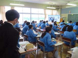 依然として寒い日が続いています。しかし、飯中生は、元気いっぱいに授業に取り組んでいます。今日もいろいろなクラスの授業にお邪魔しましたので、その様子をお伝えします。