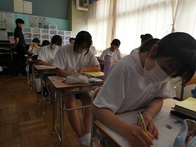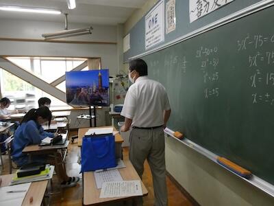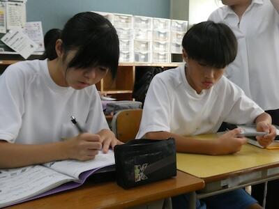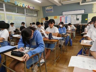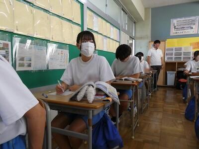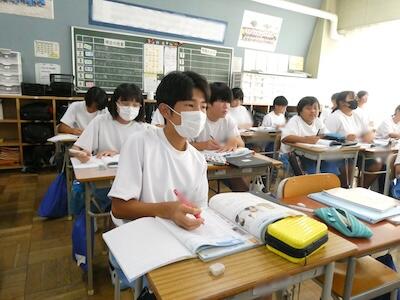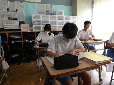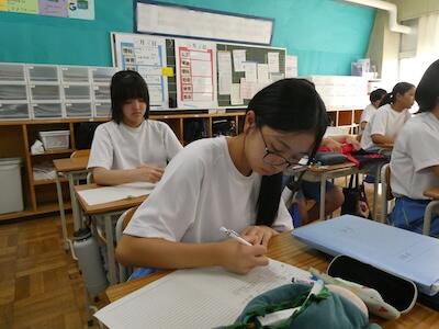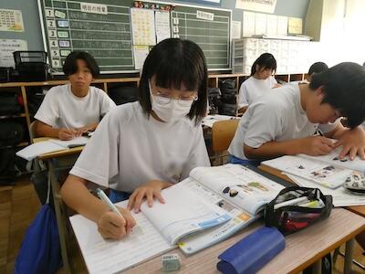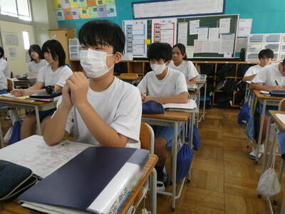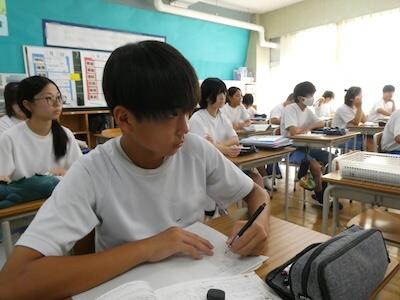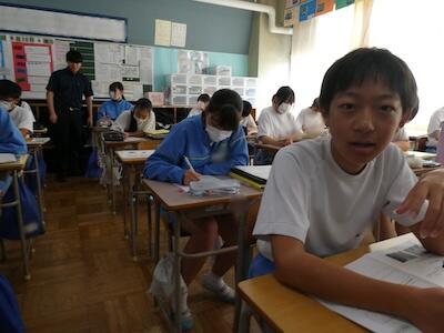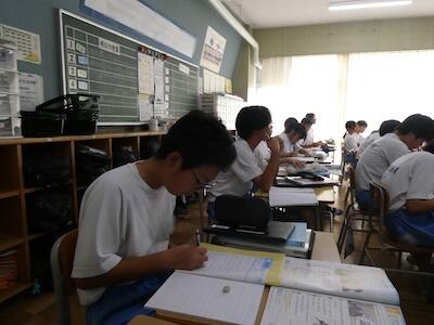 本日の授業の様子です。1年生の数学は方程式を学習していました。また社会はアジアについて学習していました。2年生の数学は1次関数を学習していました。3年生の数学では2次方程式を学習していました。また理科はメンデルの法則について学んでいました。熱心に学習している様子が伝わってきます。
