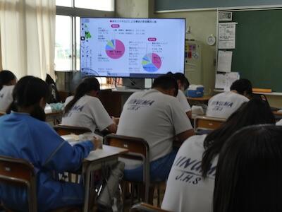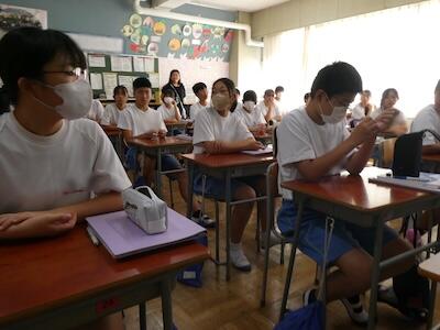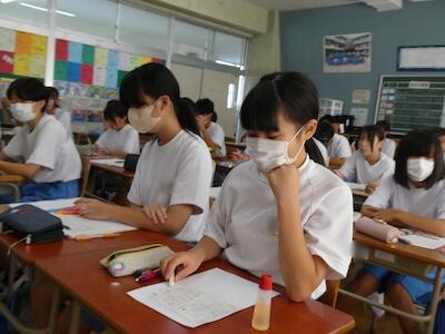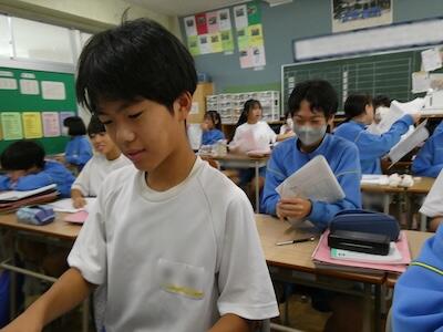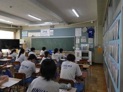 本日の授業の様子です。3年生の保健体育では、空気をきれいに保つ方法について学んでいました。また社会は、直接民主制・間接民主制について学んでいました。2年生の数学は1次関数について学んでいました。1年生の英語では助動詞canを学んでいました。充実の秋、新しい単元にチャレンジするクラスがたくさんありました。