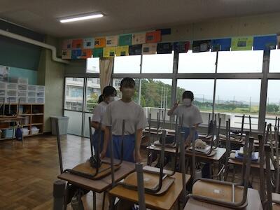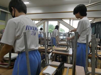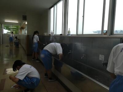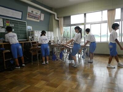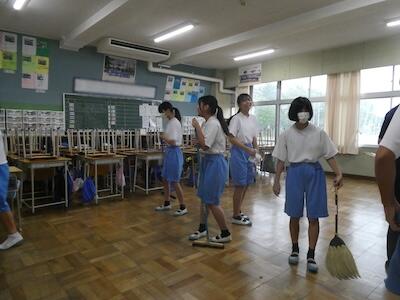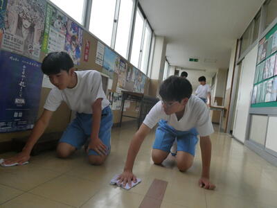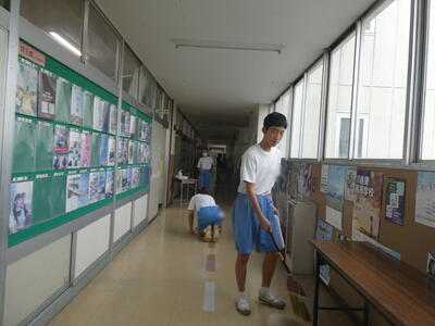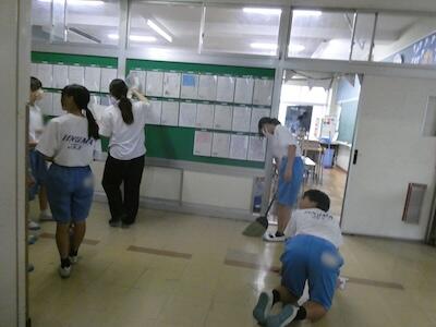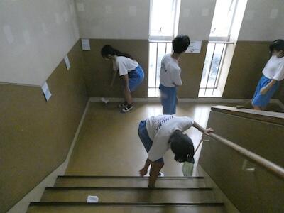 朝清掃の様子です。短い時間ですが、有効に使い丁寧に掃除をしています。場を清め、学業のスタートです。