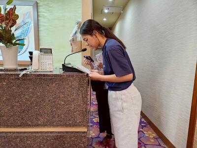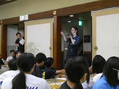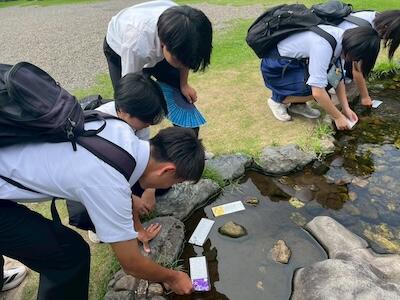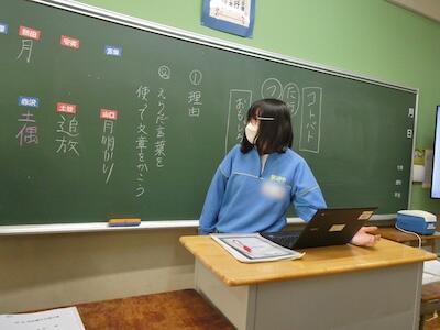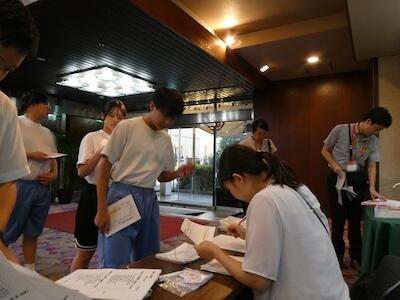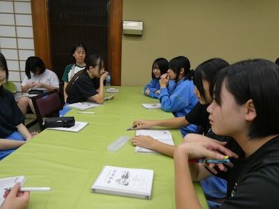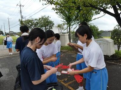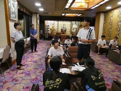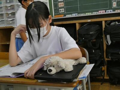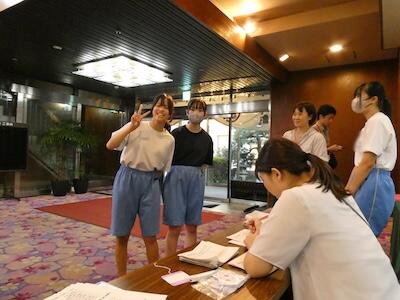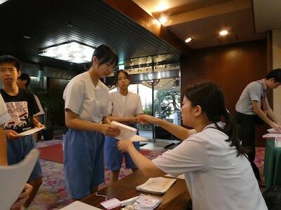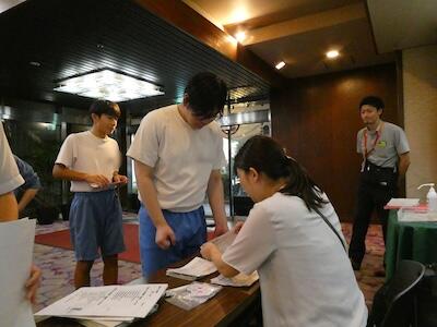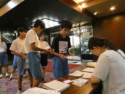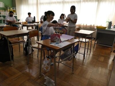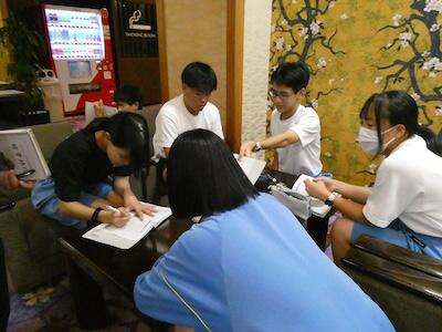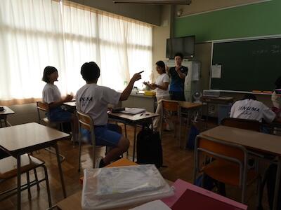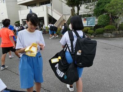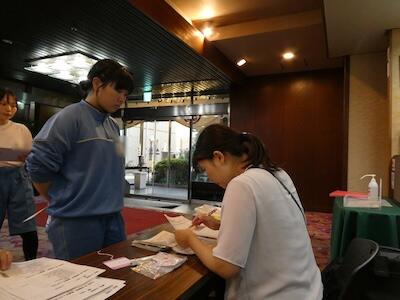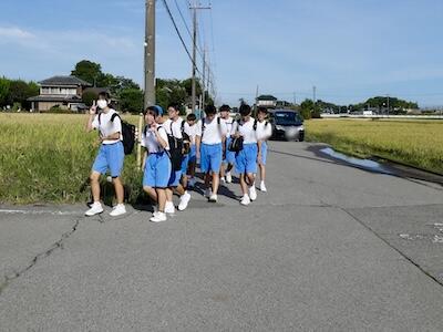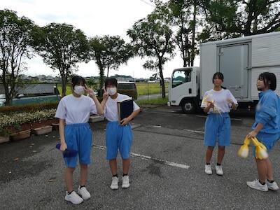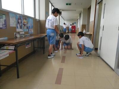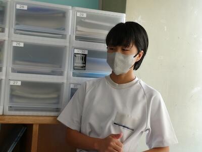 帰着後の健康観察を保健係が養護の先生に報告しています。