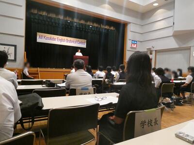 本日は、田園ホール・エローラにて埼葛英語弁論大会が行われました。先日の市内大会で2位に入賞した本校の生徒が出場しました。スピーチは、昨日までの修学旅行の疲れを感じさせない素晴らしいものでした。とてもよくがんばりましたね。