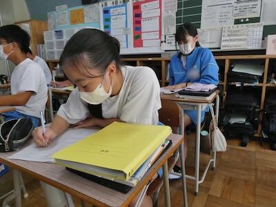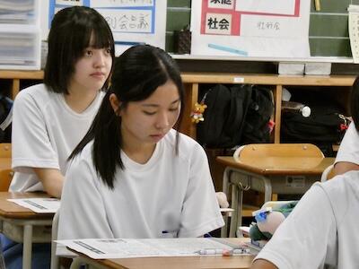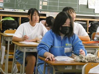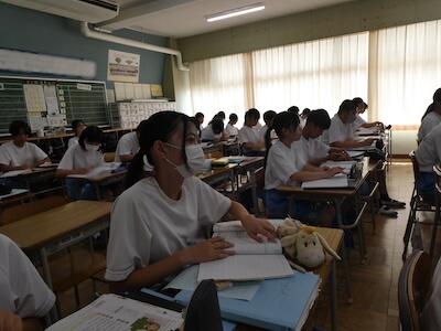 本日の授業の様子です。3年生の家庭科では、乳幼児の心の発達について学んでいました。みんな自分の小さかった頃や電車などで見かける母子の姿を想像し、頷きながら授業に臨んでいました。2年生の社会では、江戸の町人文化である化政文化について学んでいました。1年生の数学は、方程式を用いて日常にある問題に取り組んでいました。学びの秋、充実しています。