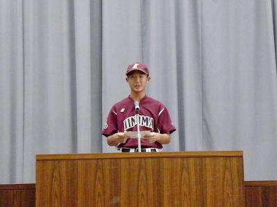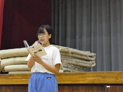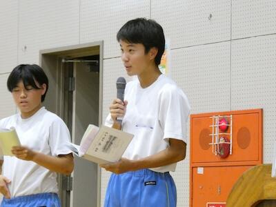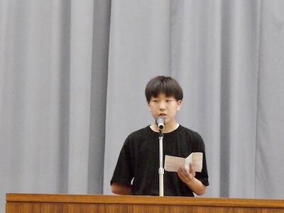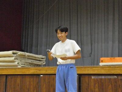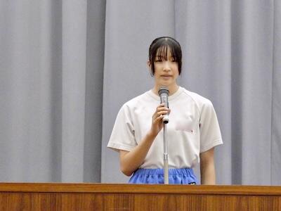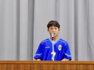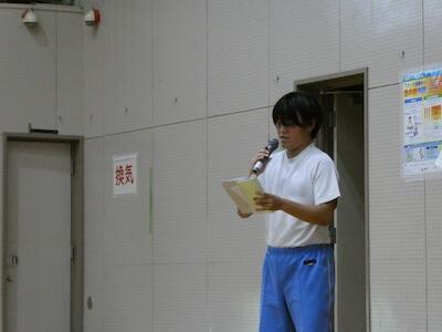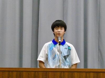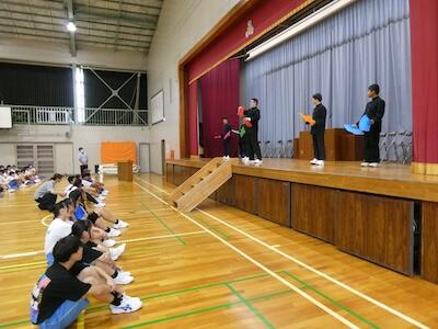 本日は、生徒集会があり、部活動壮行会が行われました。各部の部長(代表)が新人戦や各コンクールに向け力強い決意を述べました。3年生から代が変わり、先輩たちの想いも受け継ぎがんばるのだ!という気持ちが伝わってきました。私からも「『やりきった』と胸を張って言えるよう、持てる力を余すことなく発揮してください。最後まで諦めない姿に美しさがあります。応援しています。」とエールを送りました。最後は生徒会本部役員による応援が行われました。新人戦まであと少し、ぜひがんばってください。