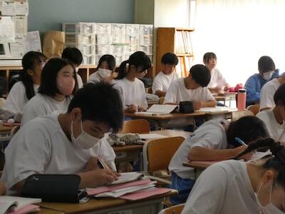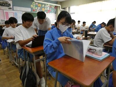 本日の授業の様子です。修学旅行から一夜明けた3年生は、さすがに疲れが残っているようでした。今日は、修学旅行中に行った探究活動のまとめをしていました。