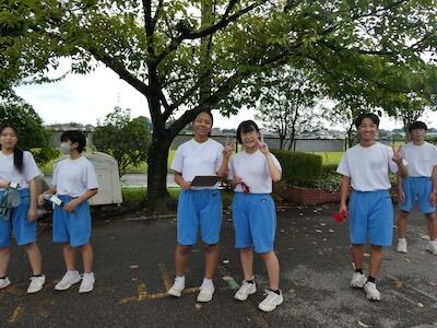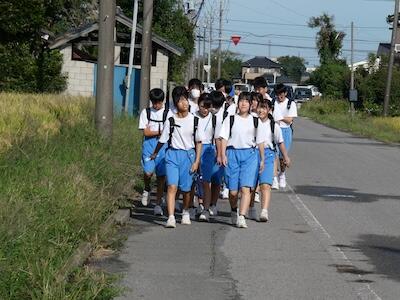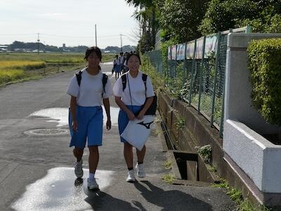 週のはじまりは登校の様子からです。今日は秋晴れのとても爽やかな朝でした。「爽やか」は秋の季語。秋の澄んだ空気や風がもたらす、心や身体がさっぱりとして、明るくなる様子です。まさに今朝の様子のようです。