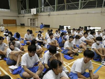 本日の6校時は、修学旅行直前集会が行われました。私からは、「行ってきますで出発してただいまで元気に帰りたい。そのためには、睡眠や食事、健康観察などの体調管理が大切。そして同じくらい大切なのは、みんなが自分たちで決めたルールやマナーを守ることである。」という内容の話をしました。その後、担当職員からの話があり、各係の代表から確認事項の発表がありました。それぞれが係の代表として素晴らしい発表でした。そして、保健関係、学年主任の話で集会は終わりました。