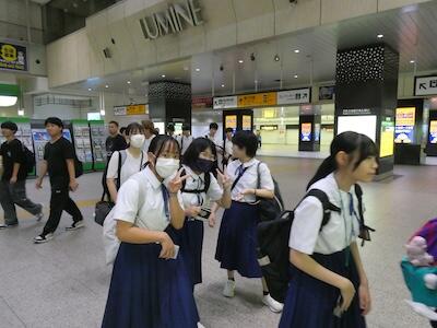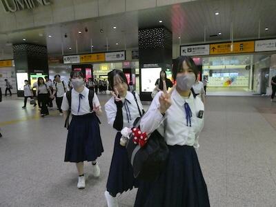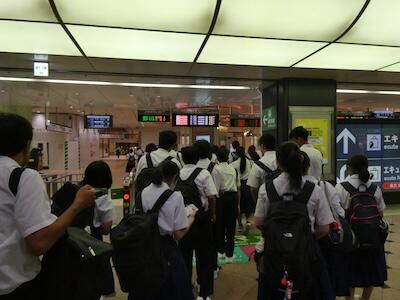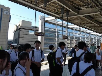 今日から3年生は修学旅行です。駅での集合の様子です。保護者の皆様、早朝から送り出しありがとうございました。