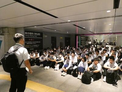 修学旅行の3年生は、定刻通り東京駅に到着し、17:48に東京駅鍛冶橋駐車場を出発いたしました。