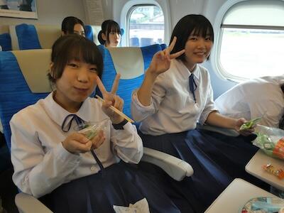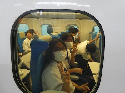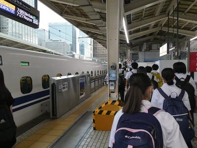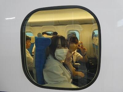 3年生は、定刻通り京都駅を出発しました。東京駅到着は、17時21分を予定しています。