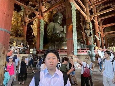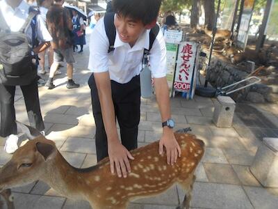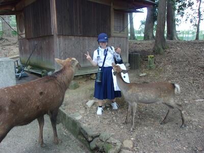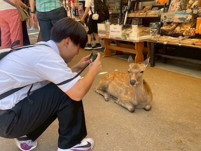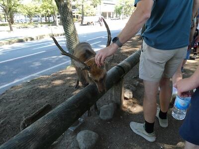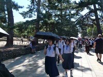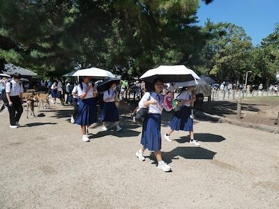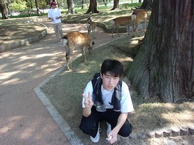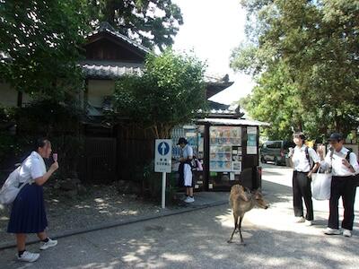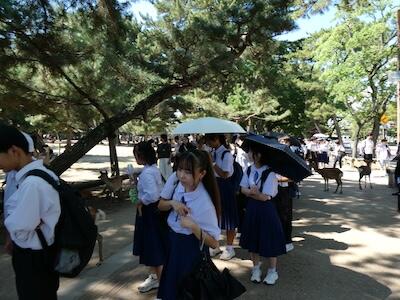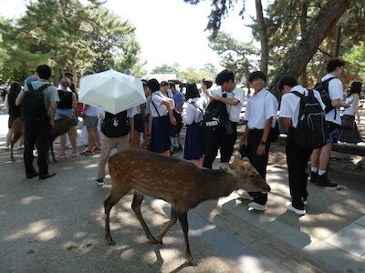 奈良に着き、東大寺を目指し奈良公園付近を歩きます。溶けそうなくらい暑いです。