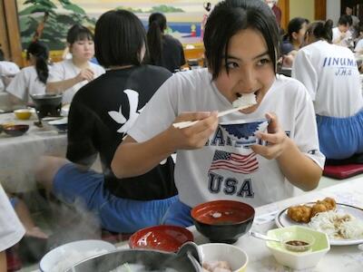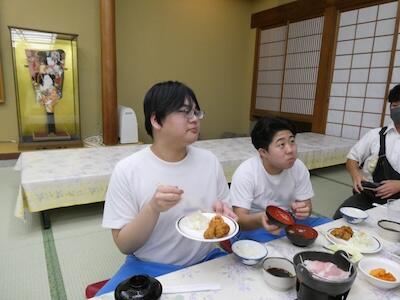 2日目の夕食の様子です。みんなおなかいっぱいまで食べました^^
