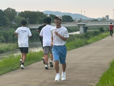 おはようございます。2日目の朝は朝活チームの早朝ランニングからです。